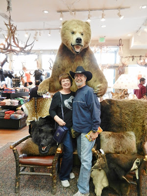 We headed first to the Mountain Man Rendezvous which is held in the Teton County Fairgrounds in Jackson. It was pretty interesting to see all the items that were for sale - animal pelts, Native American bead work, clothing and tools and lots of old pioneer items. There wasn't anything that really interested us in the way of buying but it was fun to browse.