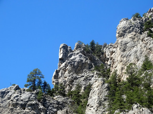Since today was my birthday, it was terrific timing for this boat cruise through the Gates of the Mountains. Today on July 19, 1805 Meriwether Lewis passed through these gates and named them. When he went though there were no dams on the Missouri River. Now traversing the river is easier because the water is 25' higher and the rapids are no longer there. Otherwise, though that group of explorers saw the same beautiful scenery that we saw today. It got into the 90's today but we took the 11 AM trip and with the breeze we were great out on the water.